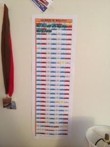 The weeks aren’t always consistent. I take the photo on the morning I intend to post and I’ve been moving the day around. But here are all the charts in one place. For realz, this is so motivating. I guess this is why parents/teachers use sticker charts so freely. I’ve become addicted to filling in that little square every night. And because I keep sharing this with the internet, I refuse to have another red mark on there. REFUSE.